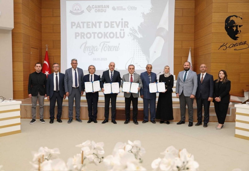 Erciyes Üniversitesi, üniversite-sanayi iş birliğinde örnek teşkil edecek yeni bir başarıya daha imza attı. Üniversitemiz öğretim üyeleri tarafından geliştirilen ve ulusal patent sistemi kapsamında tescillenmiş dört önemli buluş, özel sektör temsilcisi Çamsan Ordu A.Ş.'ye devredildi.